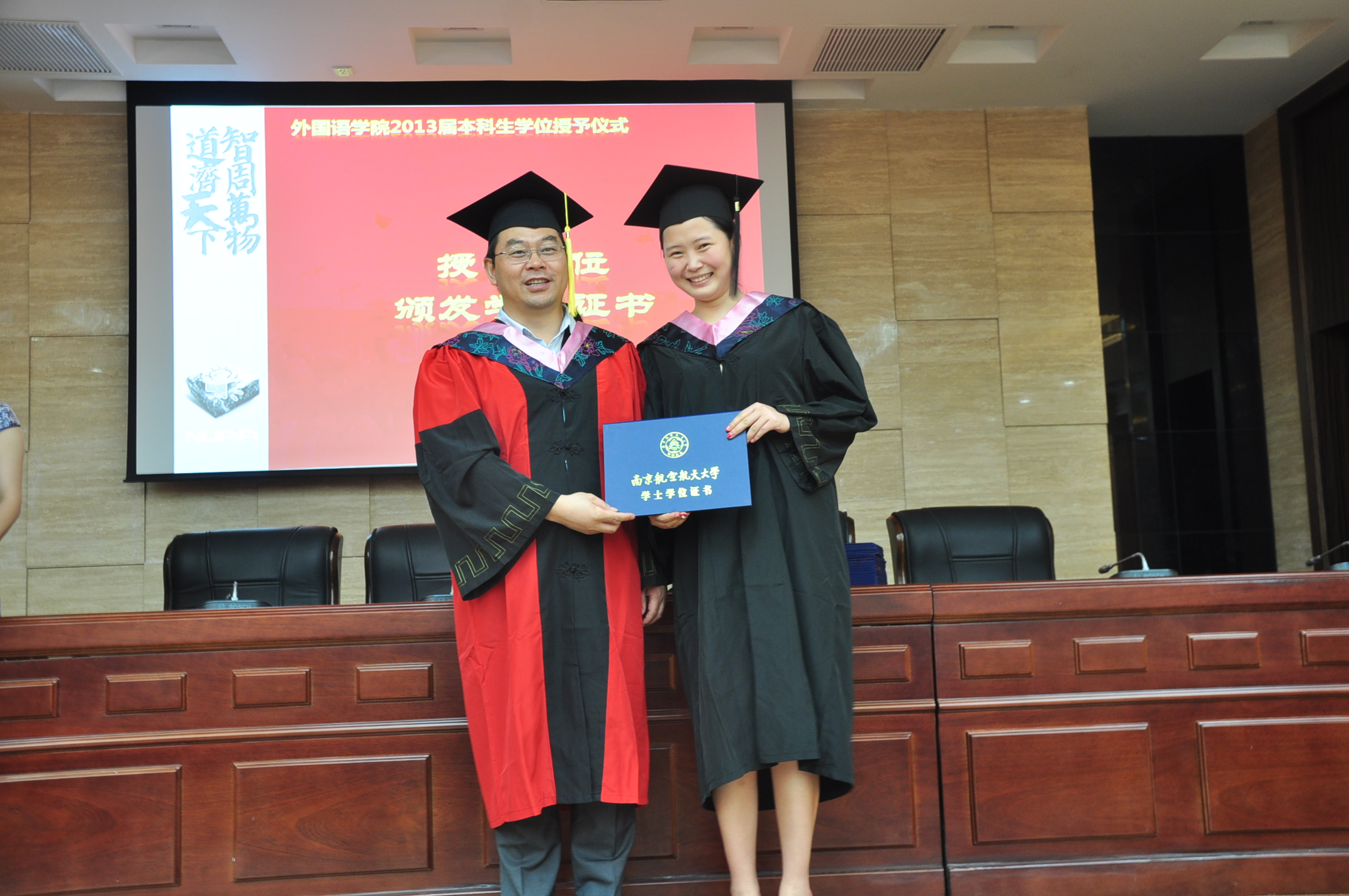 毕业典礼结束后是学位授予仪式。谢小苑和刘长江为在场的毕业生授予学位、颁发学位证书并拨流苏。在学位授予仪式中,毕业生们用自己的方式表达了对导师们的感激之情。