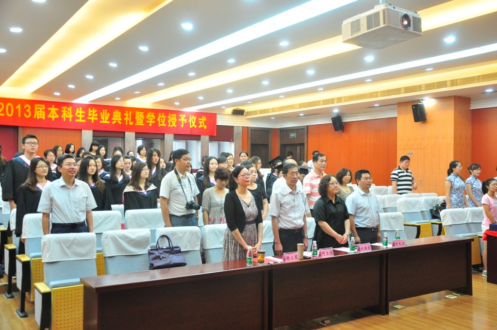 6月21日下午,腐漫画 2013届本科生毕业典礼暨学位授予仪式在腐漫画 楼举行。院党委书记刘健荣、院长何江胜、副院长谢小苑、刘长江、教师代表、校友代表及家长代表出席了典礼。