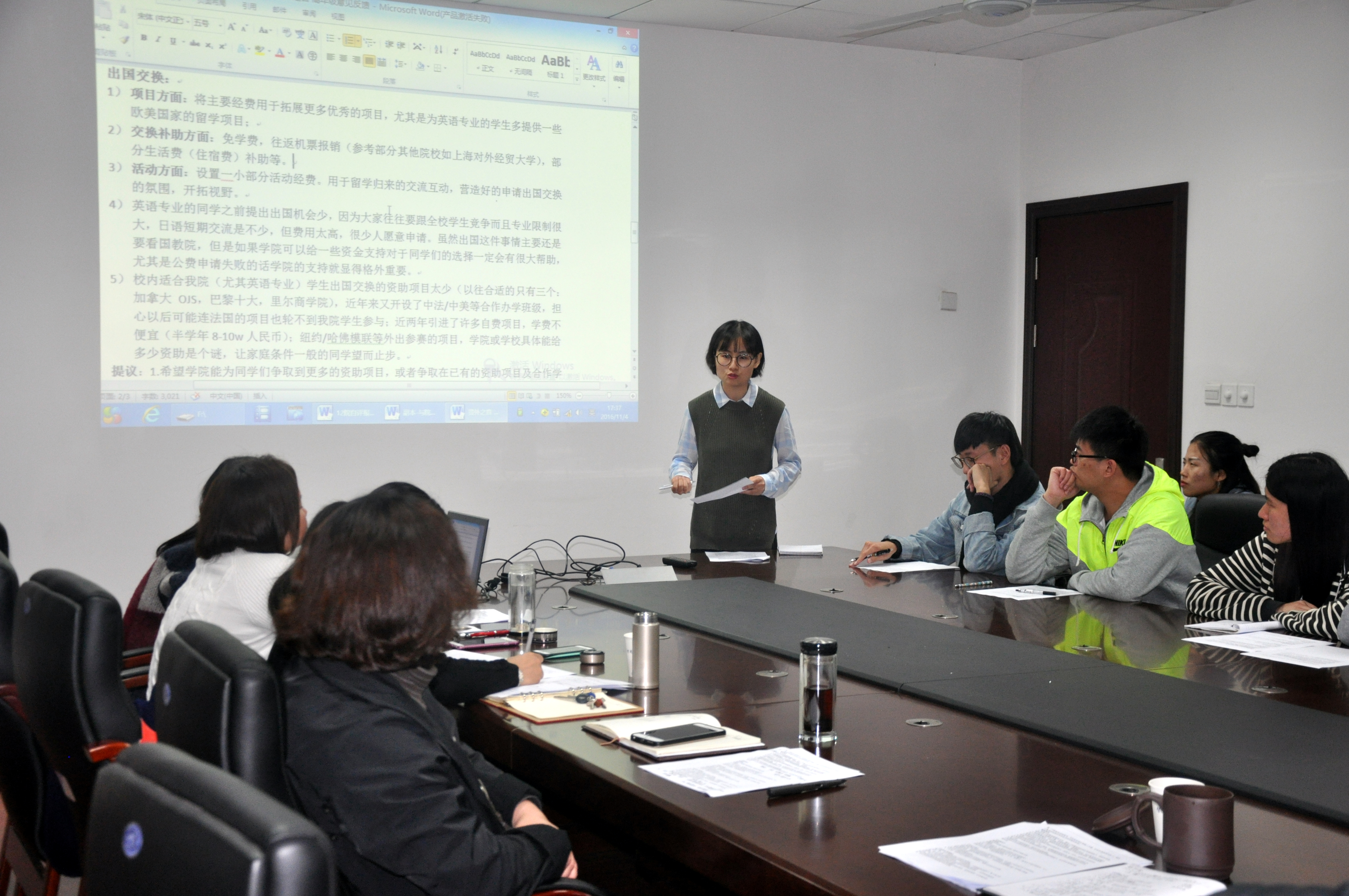 经过前期广泛的意见征集与整理,学生代表们围绕师生共同关注的课程设置、课堂教学、专业分流、本科生导师制、实习实践安排、国际化发展等话题踊跃发言,分享了现状调查结果和同学们的意见、建议。在课程设置上,英语专业学生代表提出了部分课程内容上略有重复,日语专业学生建议低年级的专业课程应有所增加;在课堂教学上,有同学建议部分老师的课堂安排更加合理,课程考核方法需提前明确等问题;对于学院即将实施的本科生导师制,学生代表们在导师的选择方法、考核方式等方面提出了具体建议;在国际化发展上,同学们期待学院多争取适合腐漫画 学生的交换项目,更加支持模拟联合国大会等国际性活动,并有机会开展与留学生的交流活动;大四学生代表也积极提出希望得到学院更加合理地安排课程时间以利于学生进行有针对性的、高质量的实习等建议。