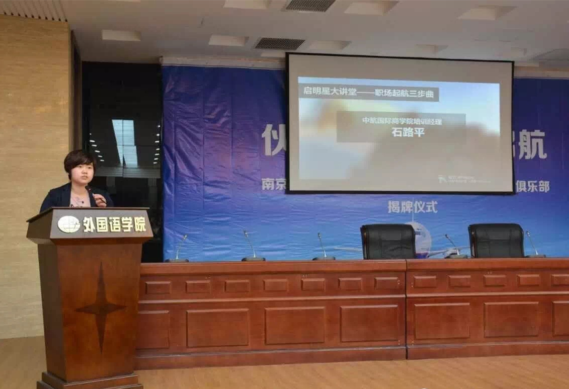 中航国际商学院培训经理石路平讲解了在职业规划中最为重要的三个问题:要不要做职业规划、谁来做职业规划、职业规划应该规划些什么。她引用多个与学生息息相关的事例,深入浅出地对这三个问题进行了解答,并希望同学们在入职前抓住机会,充分提升自己的知识、技能等岗位胜任力。