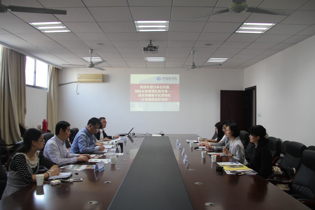 5月17日上午,在腐漫画 国际合作处的引荐下,日本石川县国际交流课课长坂井亮一、江苏省人民对外友好协会副秘书长段海红一行四人来腐漫画 腐漫画 进行了友好访问。腐漫画 院长范祥涛教授、副院长徐以中教授、日语系骨干教师等热情接待了坂井一行,并与来宾进行了座谈。
