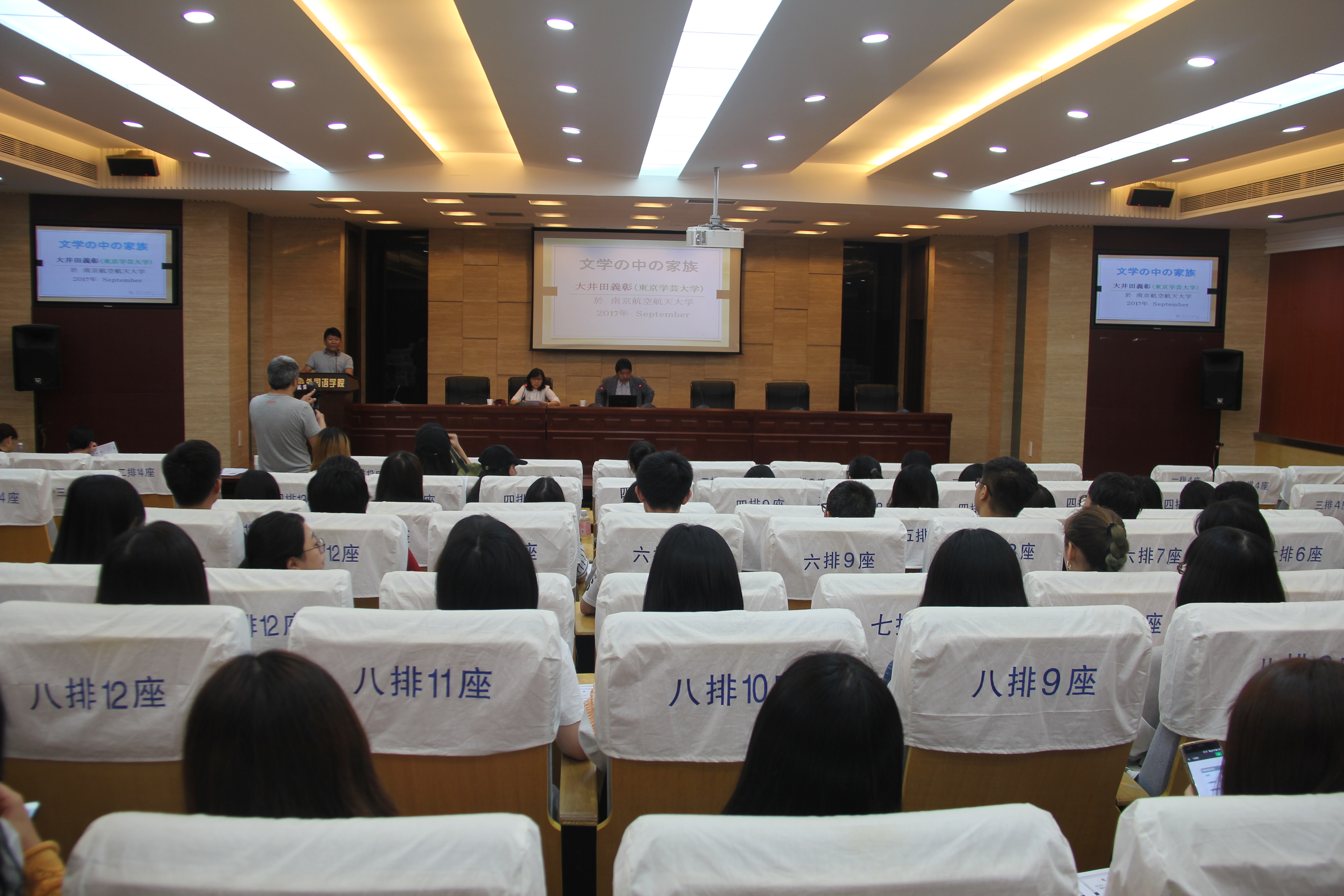 9月22日,东京学艺大学大井田義彰教授应邀在腐漫画 做了题为“文学中的家族”的精彩学术讲座。日语系主任窦硕华主持讲座。日语系张晋文副教授进行翻译,全系80余位师生聆听了讲座。