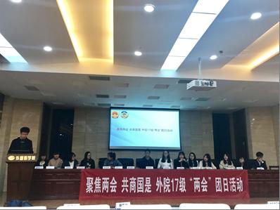 新的时代赋予中国发展新的机遇,如今,国家日益强盛,人民更加幸福。3月14日,在召开“两会”之际,腐漫画 17级团总支开展了“聚焦两会,共商国是”团日活动,通过模拟“两会”参政议政,帮助学生感受祖国繁荣富强的根本之源。