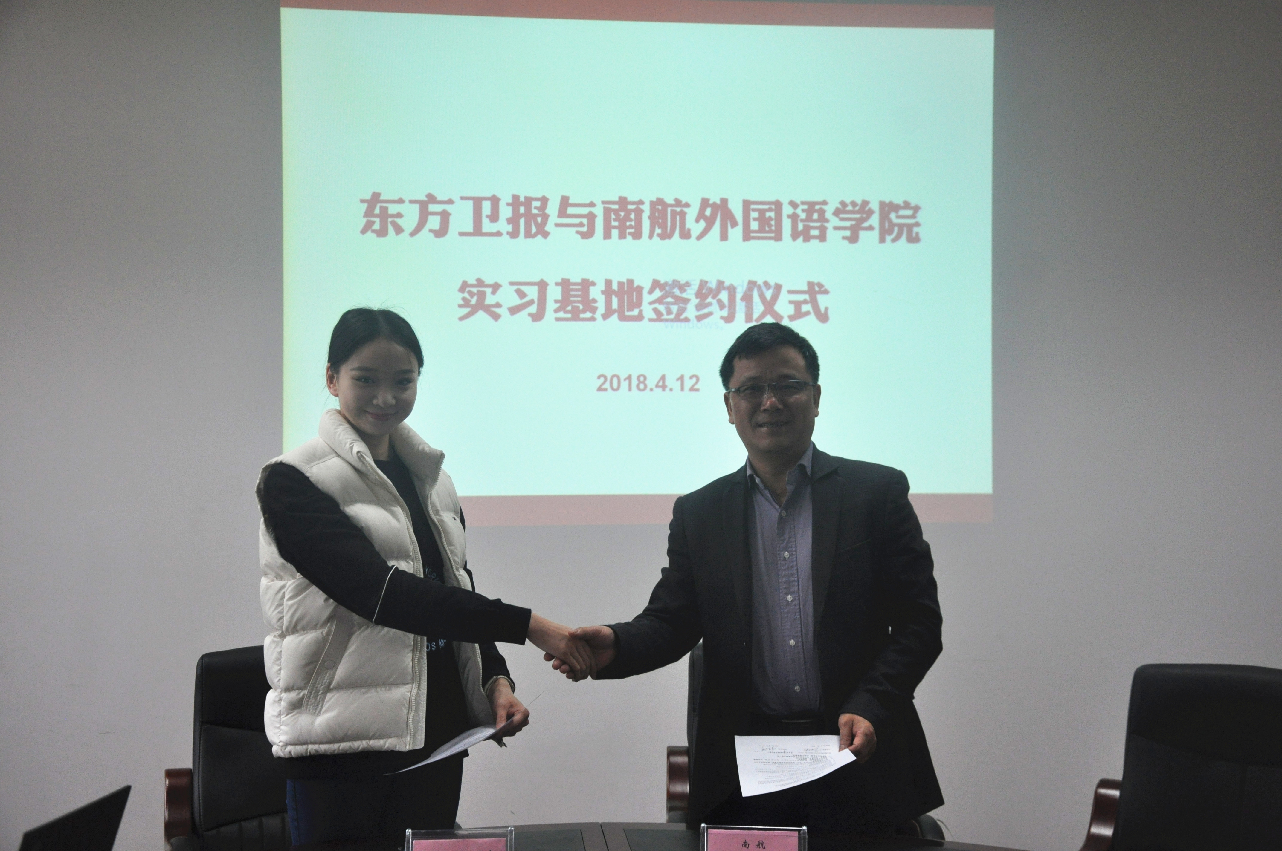 4月12日上午,中央电视台希望之星英语风采大赛江苏组委会、东方卫报地铁文创中心与南航腐漫画 实习实践基地签约仪式在腐漫画 327会议室举行。