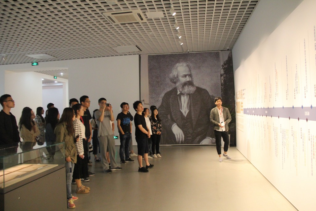 在马克思诞辰200周年之际,为激发学生党员的学习热情,丰富支部党日活动形式,腐漫画 本科生联合党支部、16级研究生党支部、17级研究生党支部于5月19日上午联合开展了“看风云激荡,耀思想光芒”主题教育活动,组织共36名学生党员前往南京大学仙林校区美术馆参观“马克思诞辰200周年纪念展”。