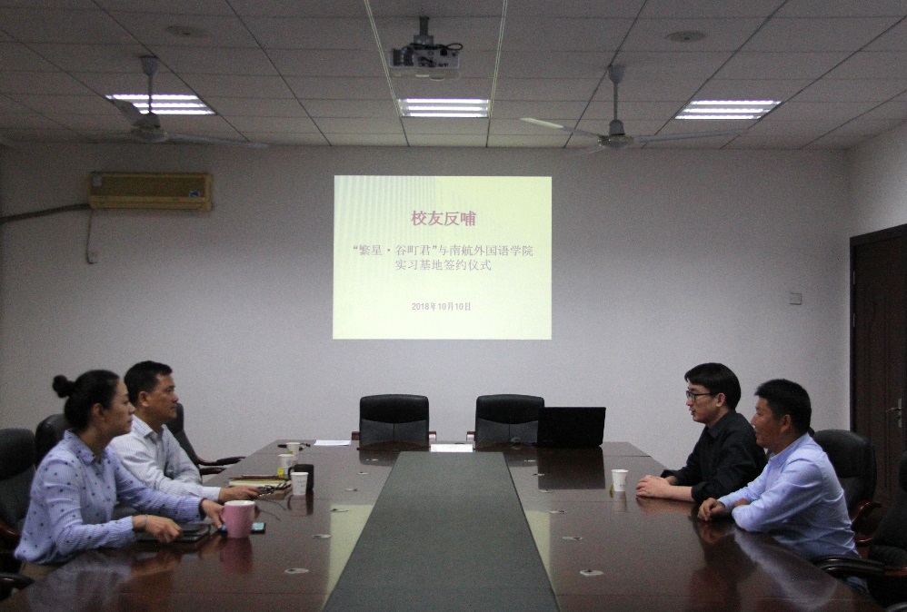 院长范祥涛、学院党委副书记梁薇、日语系主任窦硕华与刘洋进行了亲切座谈。座谈中,刘洋充分表达了作为南航外语人的自豪,并表示自己的成就离不开学院和日语系教师的谆谆教诲。