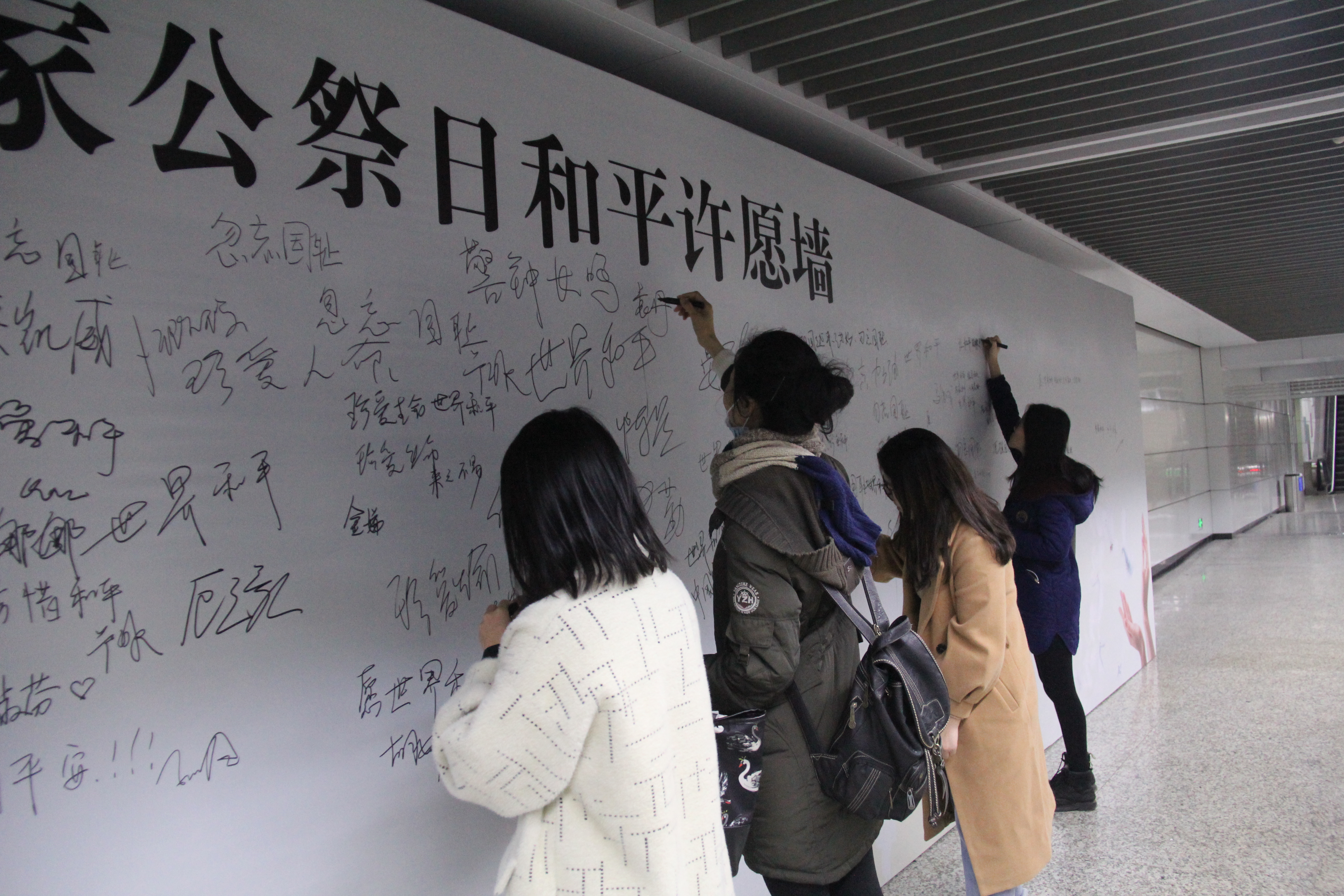 学生党支部的12位党员同学前往南京南站,参加南京大屠杀死难者国家公祭⽇“和平许愿墙”活动,悼念同胞,铭记历史,祈愿和平。 由市委宣传部等单位指导、东方卫报社主办的南京大屠杀死难者国家公祭⽇活动,在南京南站7号口的通道两侧,设立了两面“和平心愿地图”与“和平许愿墙”。来往的民众纷纷驻足,在地图上家乡位置进行许愿签名,并将家乡所在地与南京连线,寓意各地人民共同祈求和平,祝福中国。在另一侧60平方米大小的许愿墙上,写满了民众对于战争的谴责和强国的梦想,字里行间流露出的是对南京大屠杀遇难同胞的沉痛悼念与对未来的美好希冀。 腐漫画