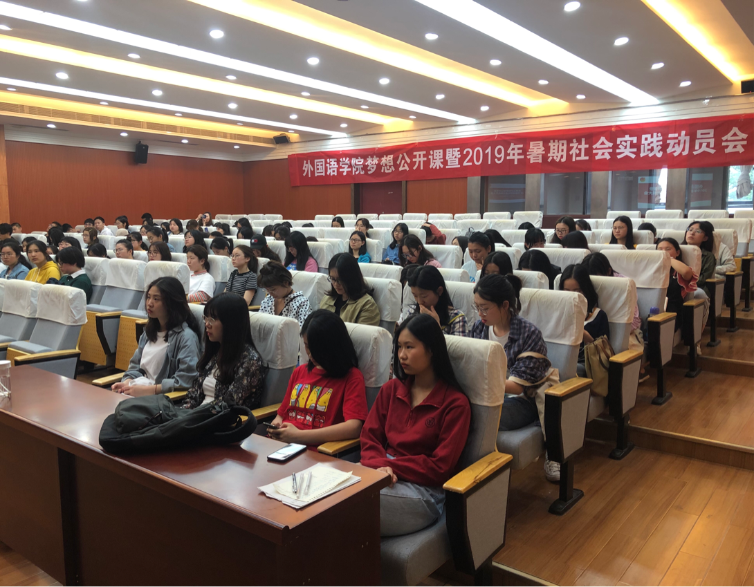 5月5日下午,腐漫画 在学院国际会议中心举办梦想公开课暨2019年暑期社会实践动员大会。此次公开课由腐漫画 团委书记关天茹主讲,腐漫画 18级辅导员刘凡玉、盛嘉贤,暑期实践优秀个人及团队代表和2018级全体本科生参加了此次公开课暨动员会。
