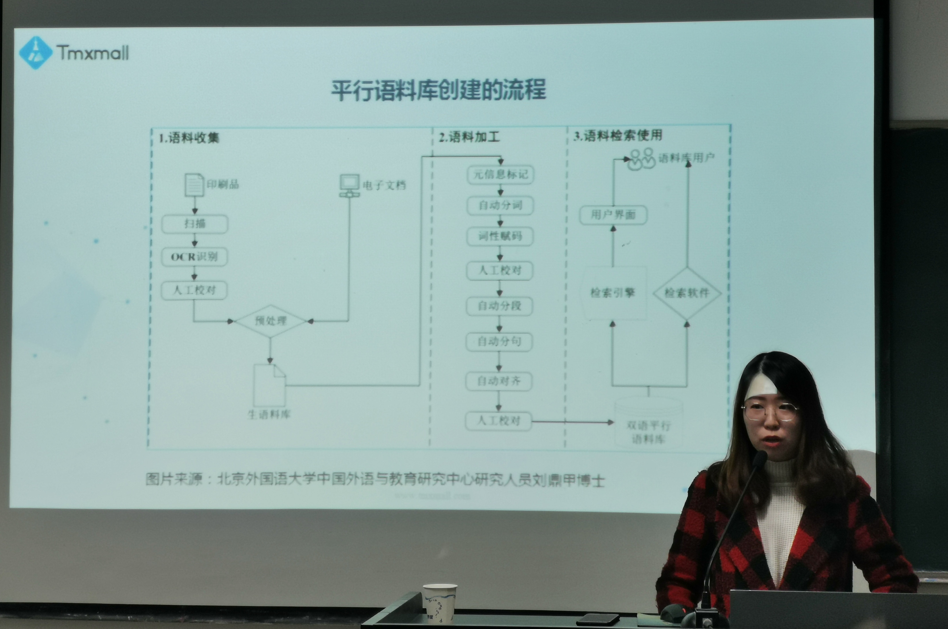 随后,王莹就翻译记忆库、术语库的创建及其用法进行了生动的讲解,并结合Yicat软件展示了具体的操作方法。翻译记忆库、术语库作为CAT的核心,对翻译有很大的帮助,因此语料库的创建和运用有着十分重大的意义。王莹老师同时展示了SDL Trados、雪人翻译软件、memoQ、Tmxmall、ABBYY Aligner等主流辅助翻译软件及语料库管理的操作界面,并就其用户体验进行了一一陈述。