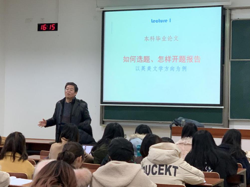 12月12日,腐漫画 邀请蔡咏春教授为2020届本科毕业生指导毕业论文写作。辅导员刘凡玉、2020届全体本科毕业生参与此次讲座。