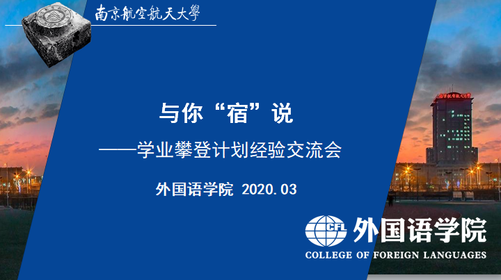 随后,英语专业上学期进步最突出的学员杨超分享了他克服学习惰性的方法;同一大寝的朋辈导师刘敏杰分享了他线上线下督促搭档学习的具体方法与心得,如共同制定学习与生活计划,及时进行单词听写、课文抽背、推荐复习材料等。日语专业上学期进步最突出的学员张淇分享了她励志感十足的绩点提高历程,从课前预习、课后复习、课下自习和课上参与四个角度说明了她所做的努力,并向大家传达了“学习时间投入和学习成绩提高成正比”的理念;朋辈导师岑阮媛作为一名自身成绩并非拔尖的帮扶小导师,介绍了她与学员相互帮助、相互督促的双人共进学习模式。两对参与同学都表示,由于有着在同一个大寝的位置优越性,更方便朋辈导师监督学员的学习状态与完成情况。最后,17级学习部部长陈卓然分享了包括自己在内的四位朋辈导师的帮扶做法,希望能够帮助18、19级的学弟学妹们更有效参与“云”攀登计划,获得学业提升。