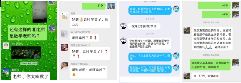 在正常授课之余,研外部的老师们还牺牲休息时间及时为学生解答学习中遇到的问题。老师们在教学中特别关心身在疫区的学生,鼓励他们在与疫情作斗争的同时不忘学习,引导他们将自身经历、所思所感制作成英文短片跟同学们分享,既锻炼了他们的英文表达能力,又让大家更直观体会到瘟疫无情人有情的温馨一面。