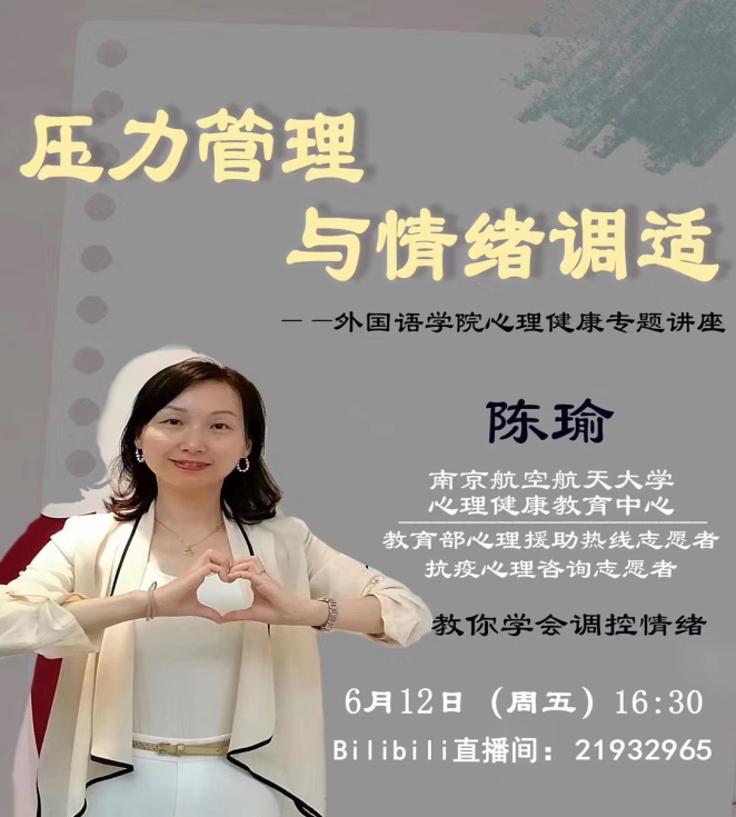 学生处心理健康教育中心陈瑜老师,从压力的概念、压力与应对、情绪调适方法三个方面指导同学们如何调控自身的情绪。