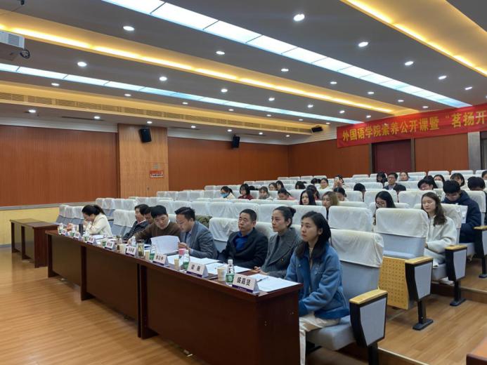 12月4日晚,腐漫画 在学院国际会议中心开展素养公开课暨“茗扬开拓者奖学金”答辩。“茗扬开拓者奖学金”资助人杰出院友冯科茗、谢志扬,腐漫画 副院长徐以中、副院长姜礼福、党委副书记梁薇,英语系副教授王晓玲,团委书记关天茹,本科生辅导员盛嘉贤担任评委。公开课由2020级日语专业新生王思捷主持,学院本科生到场观摩学习。
