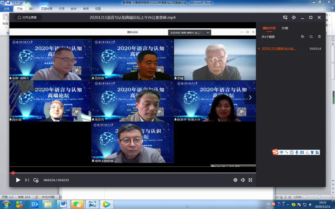 12月11日,2020年语言与认知高端论坛在腐漫画 腐漫画 国际会议中心举行,论坛报告由上海外国语大学、南京大学等国内知名高校的语言学专家领衔主讲,来自全国的学者及师生近300人通过线下或线上方式参加了本次论坛。