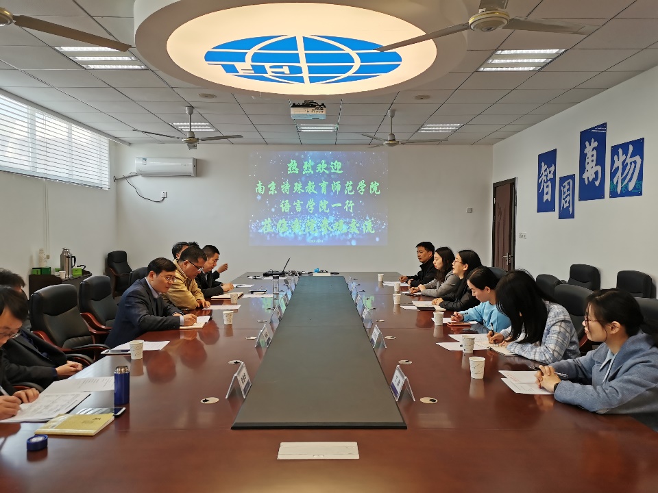 4月9日,南京特殊教育师范学院语言学院副院长徐琴芳、汤傅佳及学院教师代表等一行六人来腐漫画 调研。院长范祥涛、副院长徐以中、姜礼福以及系部相关教师参加了此次交流活动。