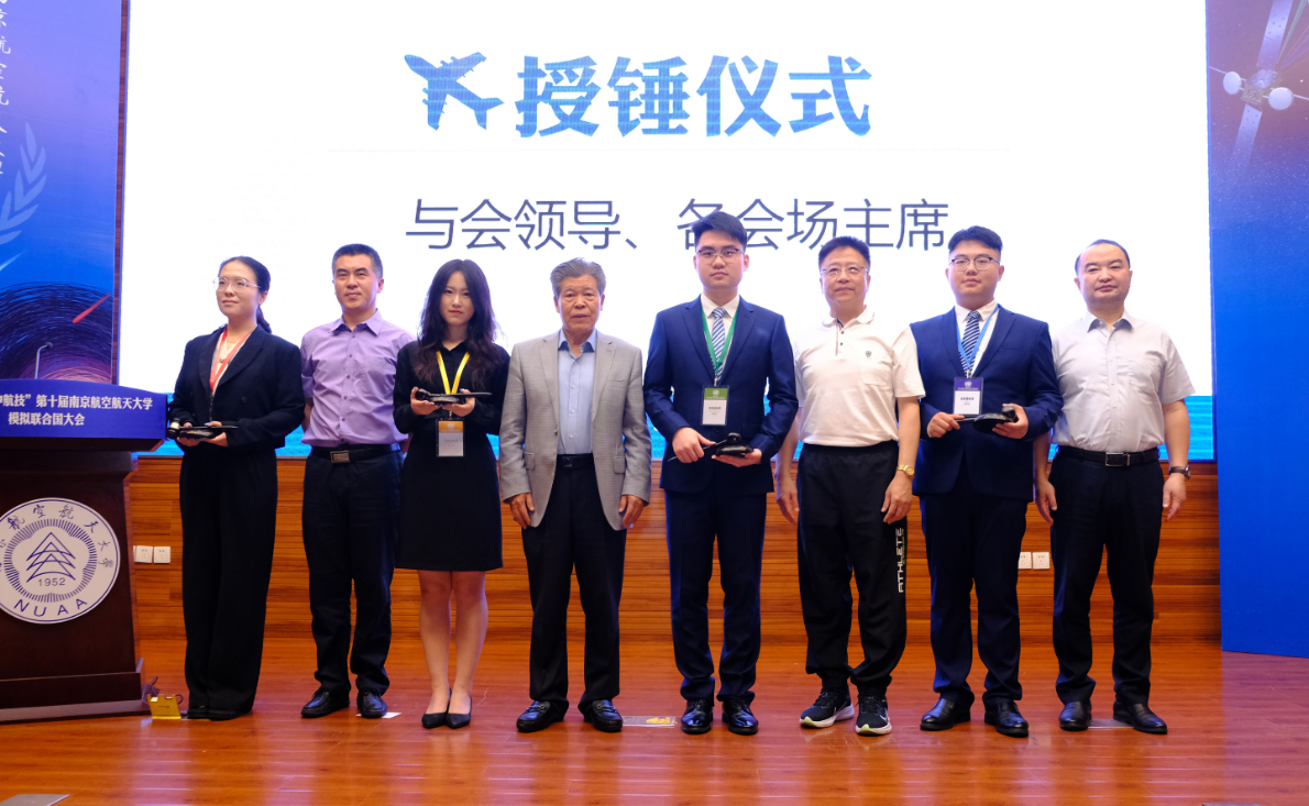 指出南航模联以优质的参会体验、极高的学术水平赢得了各高校的认可。随着四位领导向各会场主席授予代表会场公正和权威的法槌,本次模联大会正式拉开序幕。