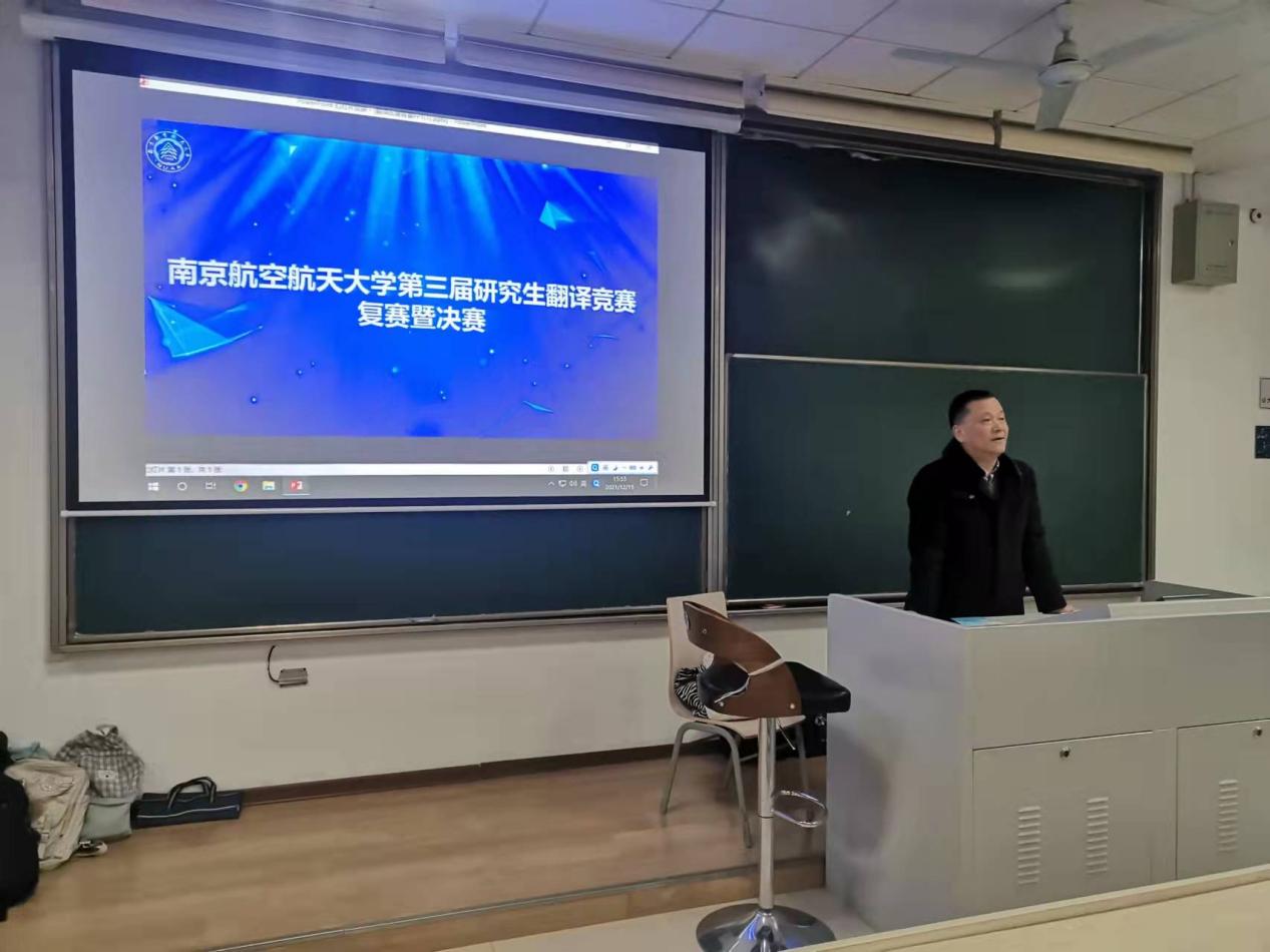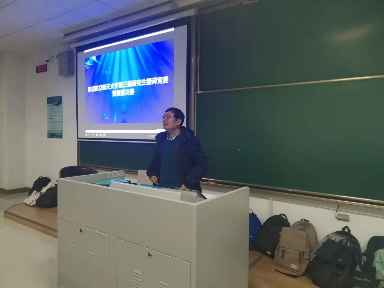 比赛由南航腐漫画 姜礼福副院长主持,范祥涛院长致辞。首先祝贺同学们顺利通过初赛,对同学们学习英语和翻译的热情表示鼓励,并强调南航学子要走向世界舞台的中心需要插上外语的翅膀。