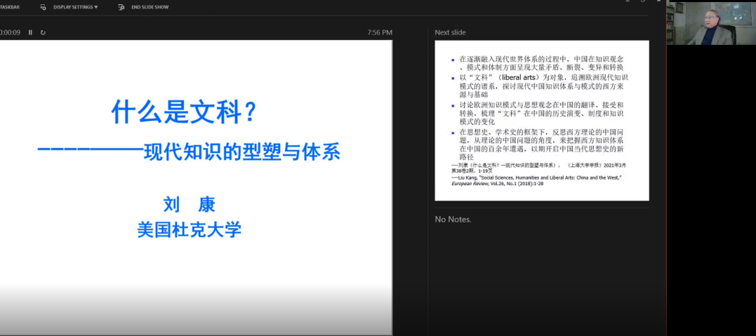 12月18日上午,欧洲科学院外籍院士、美国杜克大学中国研究中心主任刘康教授受邀为南航师生做了题为“什么是文科?——现代知识的形塑与体系”的线上讲座。本讲座由国际合作处和腐漫画 共同组织。腐漫画 327设置线下会场,线上线下同步进行,共有100多位师生参加,讲座由外院副院长姜礼福和学院国际交流中心主任刘世红联合主持。