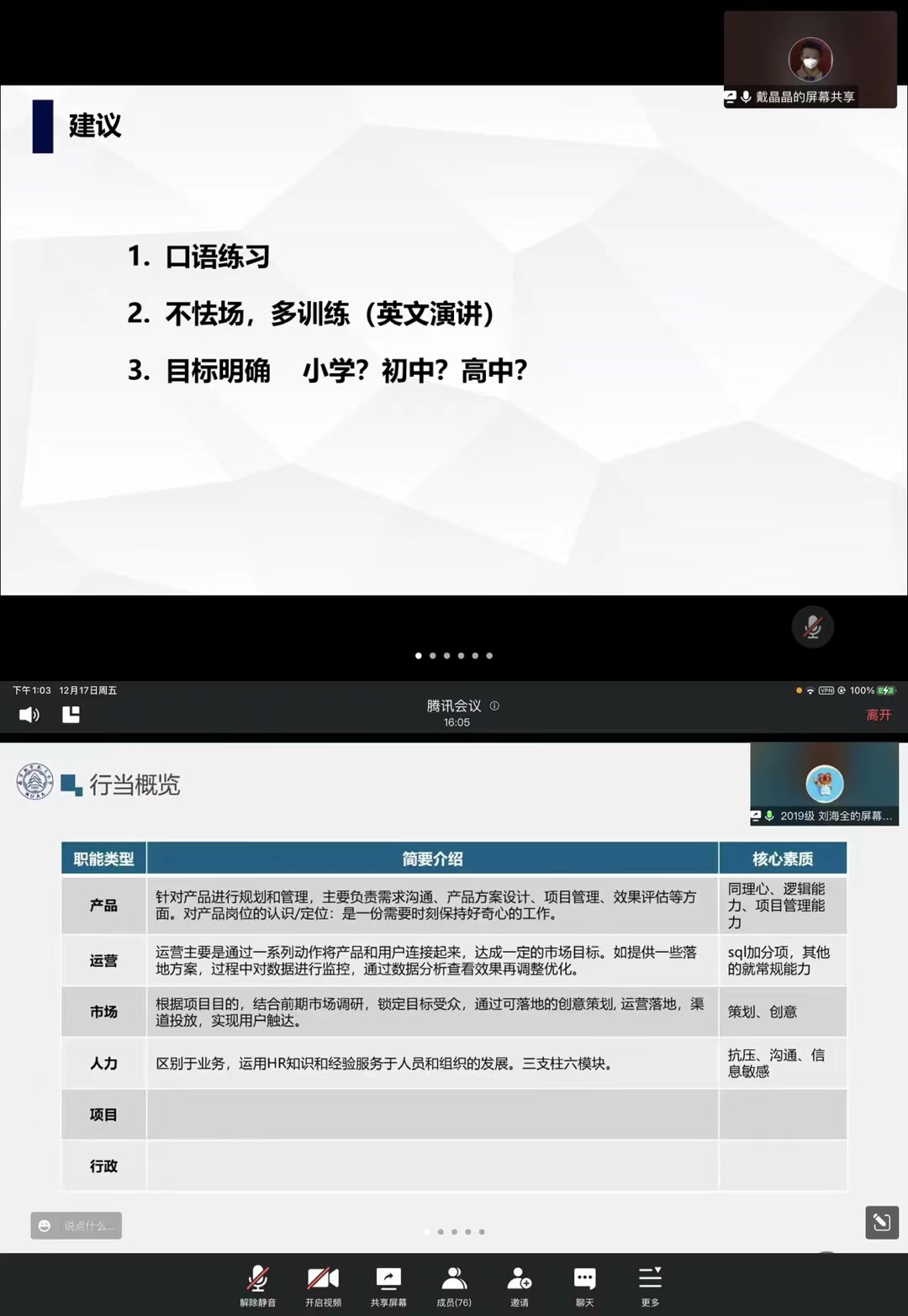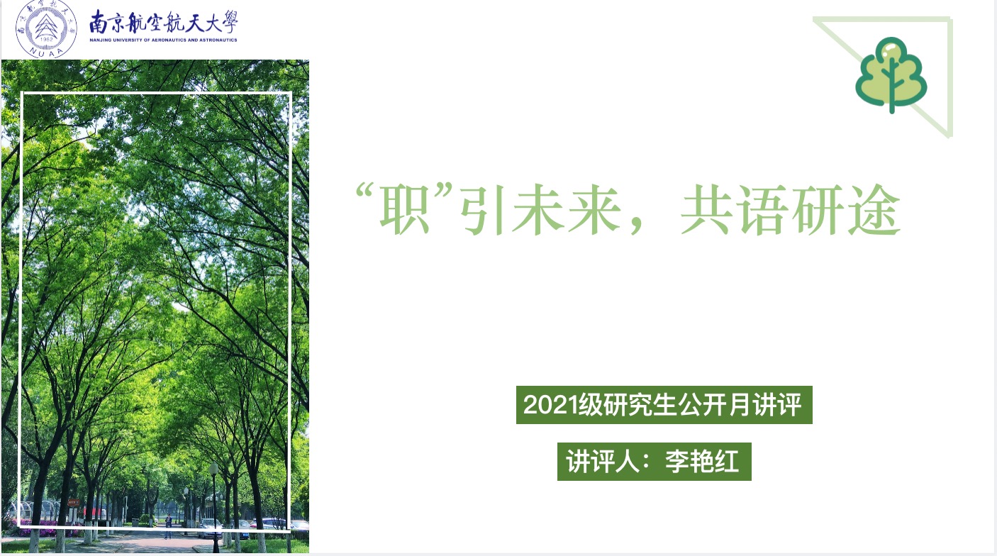 12月17日,腐漫画 面向2021级研究生开展了“职”引未来,共语研途线上公开月讲评,本次月讲评由研究生兼职辅导员李艳红主持召开,2021级全体同学参加,旨在为研一同学职业规划提供建议与指导。