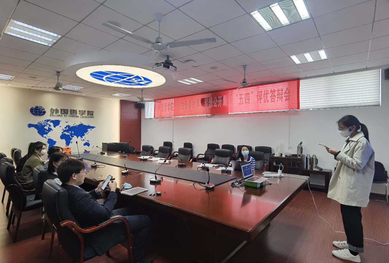 为树立优秀榜样,表彰先进青年,腐漫画 “我的青春故事”梦想公开课暨2021年度“五四”评优答辩会于4月14日线上、线下同步召开。院党委副书记梁薇、团委书记李萍以及各年级辅导员、学生参与了此次公开课。