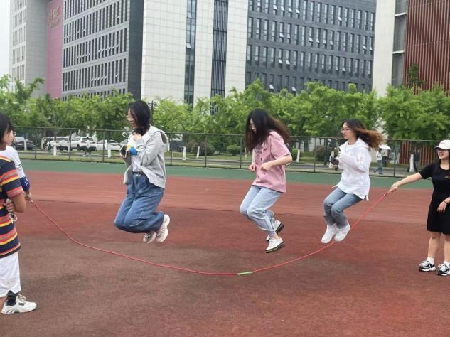 4月27日下午,1221103班在东操场进行了趣味体育活动,本次活动由103班班委共同组织。首先,在热身后同学们开始了鱼贯跳长绳。然后慢慢在鱼贯的基础上探索新方法,如多人并排跳等。在跳跃中,同学们挥洒了汗水,收获了欢笑,展现了大学生的活力与朝气。长时间的网课减少了同学们走出宿舍进行体育锻炼的机会,这次团建活动为同学们提供了一次户外锻炼的好机会。