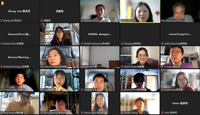 本次讲座由腐漫画 刘世红副教授主持。在讲座的上半场,Irwin Appel教授诠释了西方最伟大的戏剧家莎士比亚创作的思想内涵和艺术价值,展示丰富多彩的戏剧舞台演绎手法和理念,解读《罗密欧与朱丽叶》中爱情故事的深层意义。在讲座中精心穿插多种有趣的互动环节,引导观众领略莎翁戏剧的语言特色和艺术魅力。下半场的讲座中,多位学生演员表演《罗密欧与朱丽叶》经典对白,表演生动精彩,获得Irwin Appel教授及与观众的高度赞扬,Irwin Appel并给予悉心指导。在讲座最后的问答环节中,同学们纷纷在聊天室打字、以及开麦出镜提问, Irwin Appel教授一一答疑解惑,将讲座气氛引入高潮。