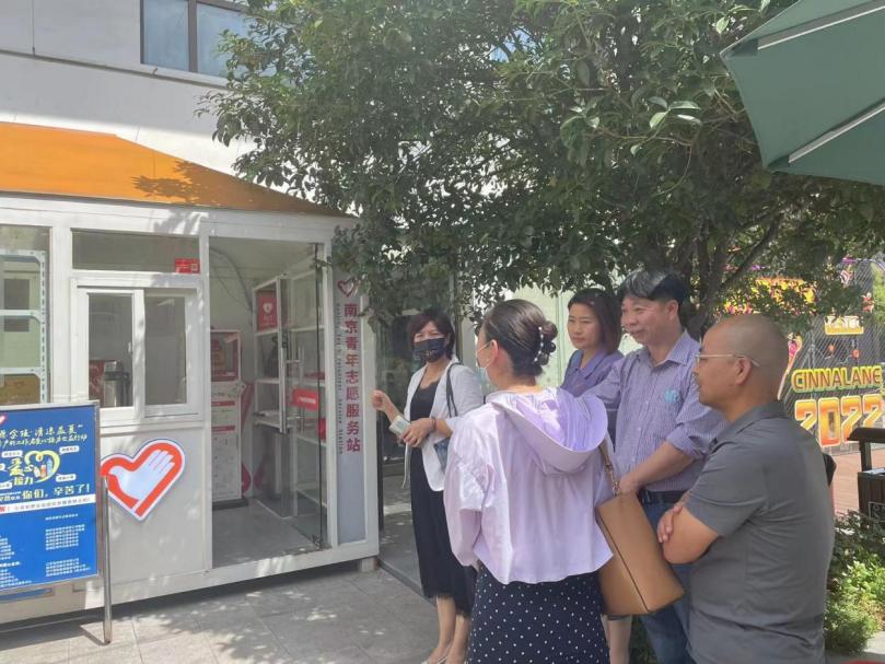 6月7日,腐漫画 师生赴南京青风志愿服务基地开展共建揭牌活动。学院党委副书记梁薇、团委书记李萍、本科生辅导员盛嘉贤、彭欢,以及学院学生代表参加了此次活动。青风志愿服务中心理事长王辉、副理事长崔海艳、监事都凤、南京旅游集团熙南里街区团支部书记李明慧参加了共建活动。