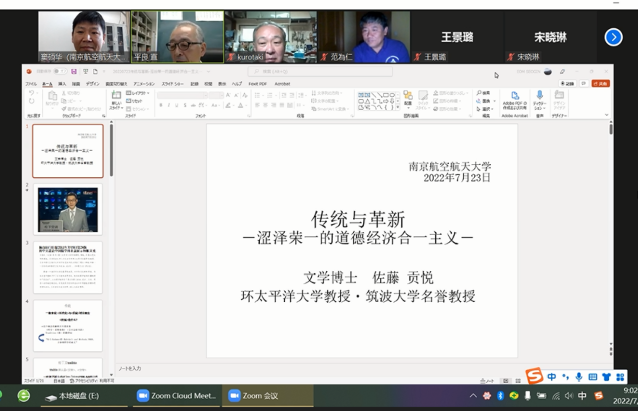 7月23日(周六)上午9:00,外国语学院日语系海外名师讲坛第三讲通过线上ZOOM会议成功进行,主题为《伝統と革新―渋沢栄一の道徳と経済合一思想―》。主讲嘉宾为环太平洋大学教授・筑波大学名誉教授佐藤贡悦先生。