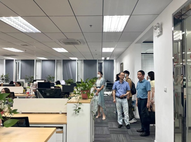 下午,师生一行来到学府集团。在集团副总经理张苏宁带领下,师生们参观了集团总部。随后座谈会上,集团董事长王成兵介绍了学府的发展历程,自1999年来已形成规模,跻身亚洲十强语言服务供应商。他希望在未来,南航外院能继续以企业需求为人才培养目标,学府也将一如既往,敞开怀抱欢迎南航学子。范祥涛表示开展“访企拓岗”是学校强化校企衔接、深化校企合作的重要途径,也是学校提升人才培养质量、促进毕业生高质量就业的迫切需要。他希望双方在已有合作基础上,进一步拓宽合作广度与深度,聚焦人才就业,大力推动产教融合、产学研合作。随后,张苏宁介绍了语言服务行业的发展现状,徐以中探讨了语言服务行业的工具应用情况,梁薇对集团发出了开设企业课程及“职前学堂”的邀约。