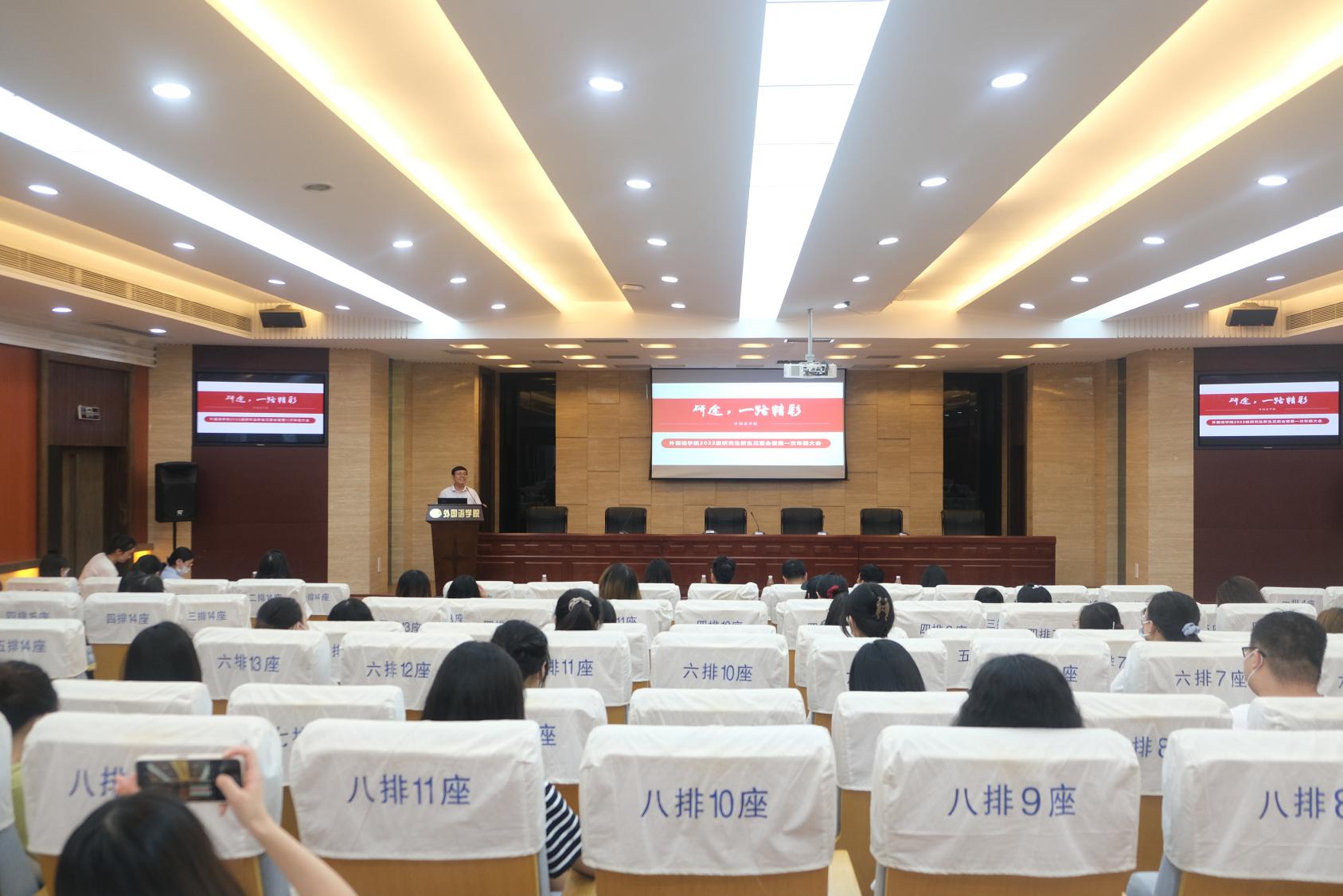 为欢迎研究生新生,腐漫画 在二楼国会中心召开了2022级研究生新生见面会暨第一次年级大会。学院院长范祥涛,日语系主任窦硕华,英语系副主任王伟,导师代表孙睿超、白雪花出席了本次见面会,大会由副院长姜礼福主持。