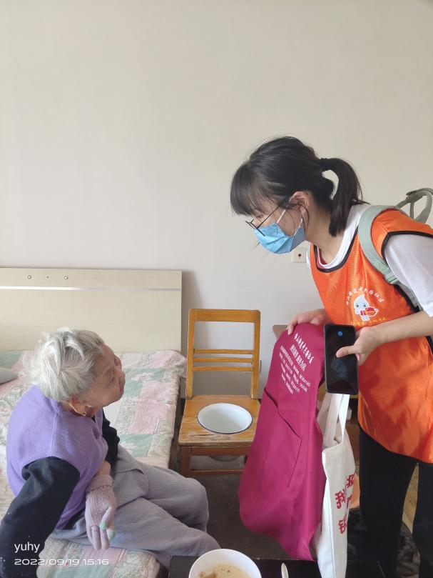本次志愿服务,学院志愿者在社区工作人员的带领下,分成四组对社区独居高龄老人进行走访和慰问。志愿者们为每位老人都带去了社区赠送的慰问物资一份,其中不但有藿香正气水、维生素C泡腾片等老人家需要的常用药品和保健品,还有毛巾、口罩之类日常生活中的实用物资。