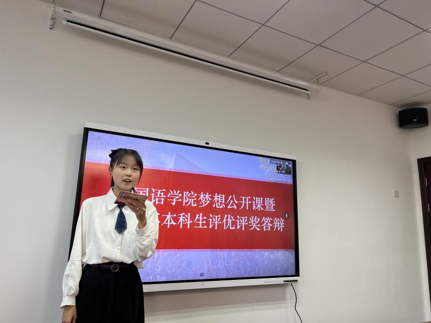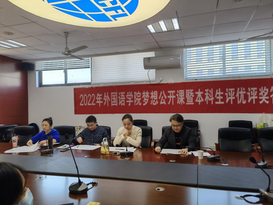 为全面贯彻落实党和国家的教育方针,积极推进腐漫画 培养具有“责任意识、创新精神、国际视野、人文情怀”的社会栋梁和工程英才的人才目标,腐漫画 于10月11日下午在学院322会议室举办梦想公开课暨2021-2022学年本科生评优评奖答辩。腐漫画 党委副书记梁薇,英语系主任张立新,日语系副主任钟勇,学院团委书记李萍,本科生辅导员彭欢、赵瑜瑶及两名学生代表担任评委。此次公开课由2022级英语专业新生王嘉玚主持,学院同学通过腾讯会议在线观摩学习。