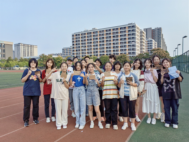 1222201班在东操场进行了团建活动。在生动活泼的自我介绍中,大家侃侃而谈,有的同学还带来了欢乐的舞蹈表演,整个氛围和谐而温暖。活动最后,每位同学用明信片认真记录下了对彼此的祝福和对未来的希冀,并配上了可爱的小图画。