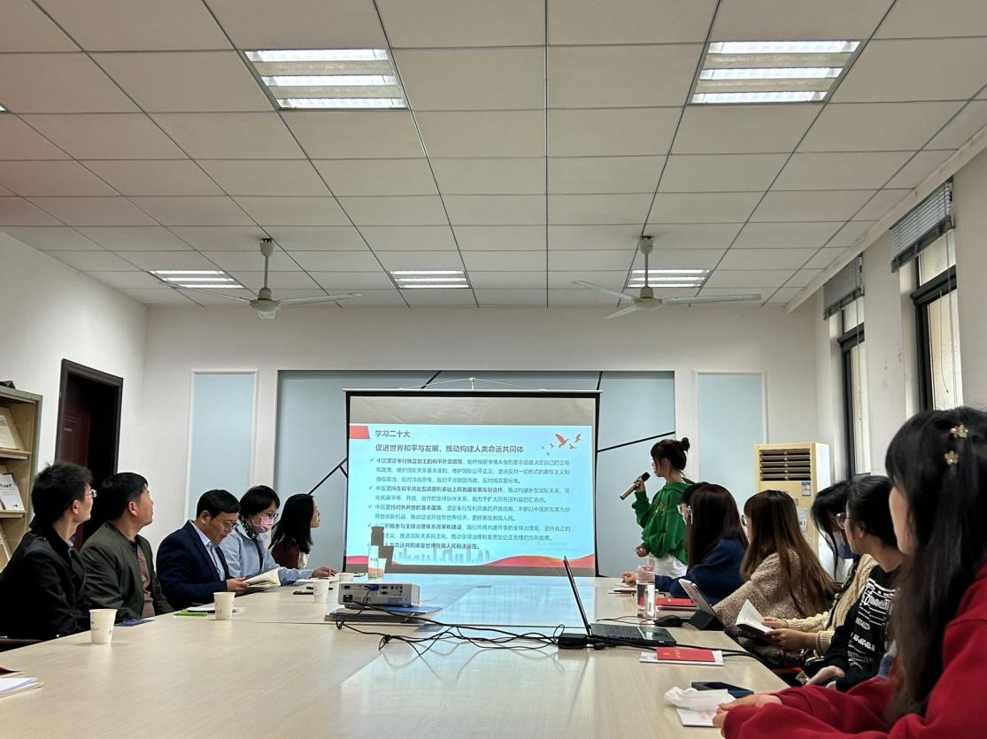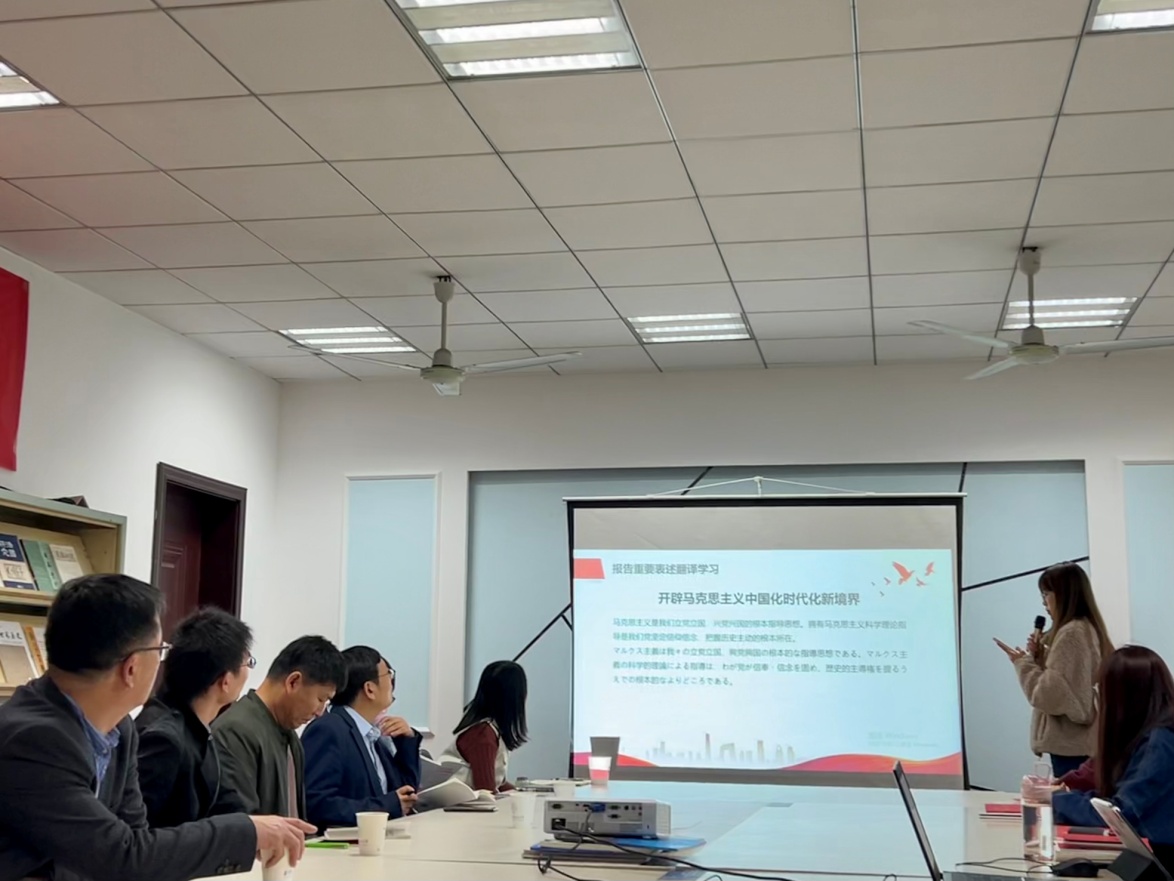 师生党员还对习近平总书记在党的二十大报告中的重要观点进行了原文和英日双语的对照学习。其中英文部分由英语系学生党员董明月领诵,日语翻译部分由日语系学生党员金一宁带领学习。大家就报告的双语翻译积极学习讨论,在热烈的讨论中更深入地理解了报告的内容。