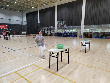 第三个项目是“南水北调”,首名队员持空水杯至盛水容器处接力取水,固定时间内“调水”最多的队伍获胜。既要跑得快,又要跑得稳,赛况分外胶着,老师同学们的运动热情在趣味赛中挥洒地淋漓尽致。