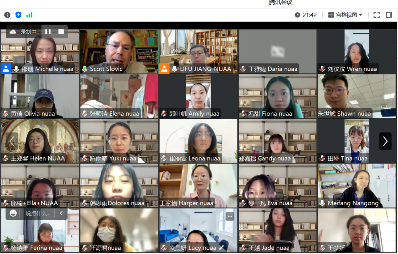 本年度大师引航课是继2022年度生态批评八讲,Slovic教授为南航腐漫画 开展第二轮线上系列讲座,是腐漫画 借助学科方向学术大师推进研究生教育教学改革、提升课程品质、深化国际学术交流的新探索,受到学生的普遍欢迎。