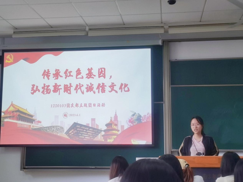 2023年6月1日,腐漫画 1220103团支部在东区教学楼D3201教室开展“传承红色基因,弘扬新时代诚信文化”主题团日活动。结合腐漫画 党员领导干部深入基层联系学生的工作机制,此次团日活动邀请腐漫画 党委副书记吴科颖参加。