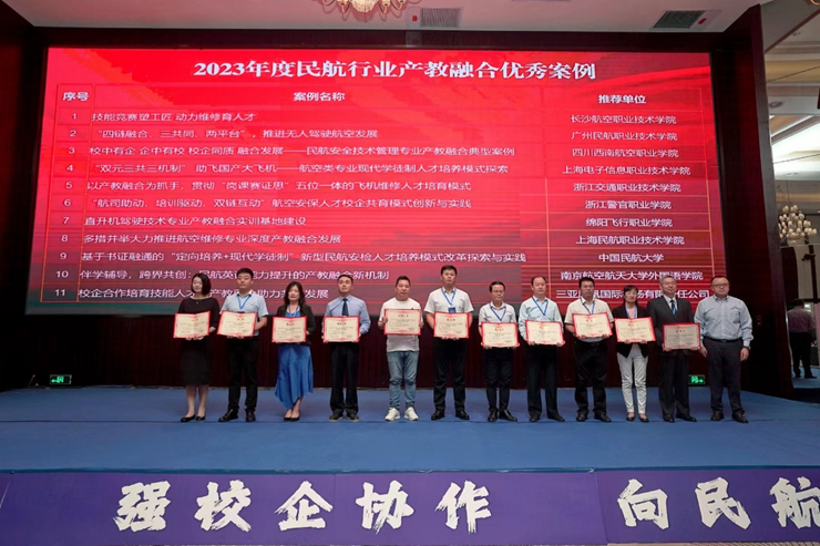 在“第三届民航职业教育培训发展论坛”召开前,中国航空运输协会征集了2023年度民航行业产教融合典型案例。腐漫画 报送的案例“伴学辅导,跨界共创:民航英语能力提升的产教融合新机制”荣获“产教融合优秀案例”称号。中国航空运输协会常务副理事长潘亿新为获奖单位颁奖,王孝存代表团队领奖。