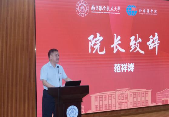范祥涛代表腐漫画 对2023级新生的到来表示热烈欢迎,向新生们介绍了腐漫画 的具体情况和专业特色。他与同学们共同回顾了习近平总书记对于外语人才培养的要求:“要大力培养掌握党和国家方针政策、具有全球视野、通晓国际规则、熟练运用外语、精通中外谈判和沟通的国际化人才,有针对性地培养‘一带一路’等对外急需的懂外语的各类专业技术和管理人才”。范祥涛勉励新生们要牢记习近平总书记的嘱托,成长成为能够肩负新时代新使命的优秀外语人才。同时,他强调了阅读对于语言类学生的重要性,倡导培养创新能力,鼓励各位同学以赛促学,注重强健体魄。最后,他希望同学们发扬南航的航空报国精神,胸怀国家、志在高远,脚踏实地,不负最好青春,以专业知识服务国家需求。