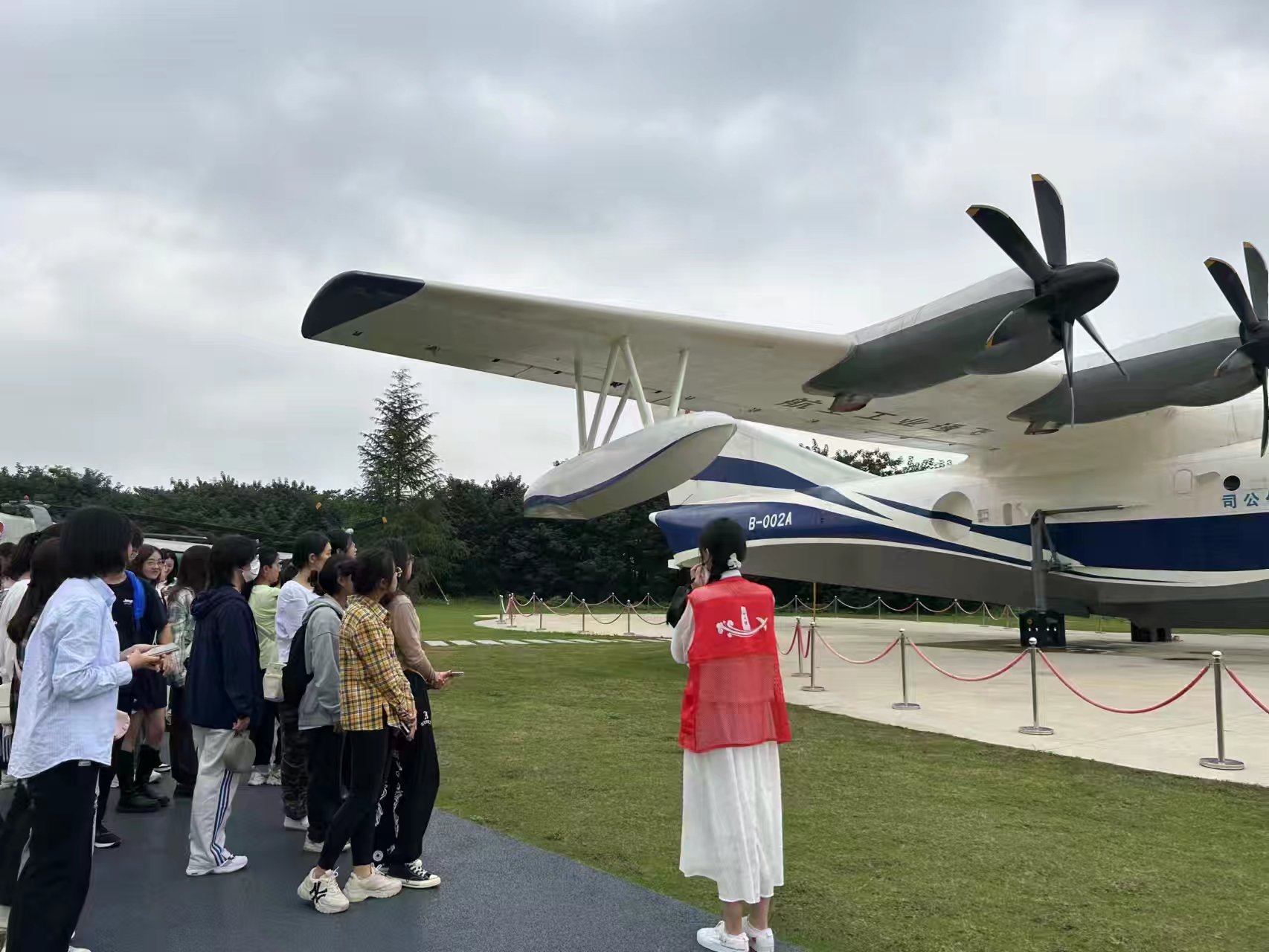 征途星辰大海间,鲲鹏翼展御风园。在“青年讲解团”志愿者的带领下,腐漫画 2023级本科新生们参观了以“鲲龙”、“枭龙”、歼8-Ⅱ、K8为代表的19架大国重器。通过近距离接触国之重器、全方位了解空天装备、沉浸式感受国防文化,同学们空天报国、志在长空的蓝色基因与红色梦想交织交融,愈加强烈。