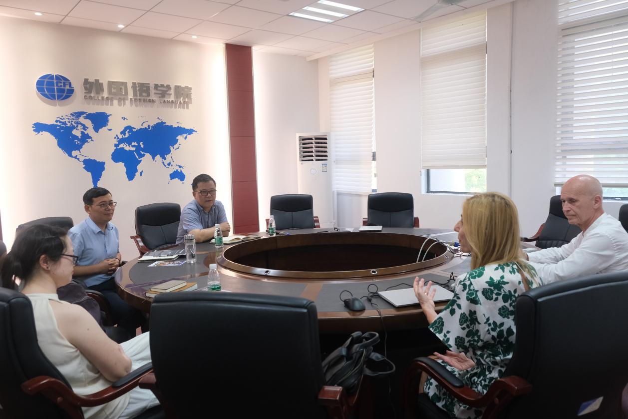 2023年9 月18日,希腊克里特大学数字人文中心主任Maria Papadopoulou博士与Christophe Roche教授应腐漫画 刘翚副教授邀请来访腐漫画 。腐漫画 范祥涛院长、徐以中副院长、姜礼福副院长,校国合处单晶副主任等一起与两位教授进行了会谈。两位教授曾于2019年暑期学校期间于腐漫画 任教,对腐漫画 学生在授课中表现出来的能力与参与度大家赞赏。随后,范祥涛教授简要介绍了腐漫画 的悠久历史、师资力量、学科特色等。双方均表示,今后可开展更多的交流,通过鼓励教师与学生定期交换、共同指导硕博士生等多种方式,促进两所大学之间的合作。