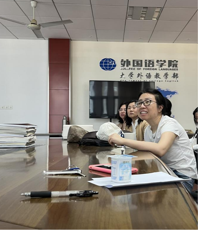 大学外语教学部主任徐智鑫主持活动并传达了本科教育教学评估工作精神,主讲人万梅老师分享了《大学英语》教学设计与课堂活动,阐释了教学设计的理论基础,展示了教学活动的课堂实践和学生的评价反馈,从写、说、画、做四个方面探讨了如何基于课本内容,设计出学生感兴趣并能积极参与的教学活动。