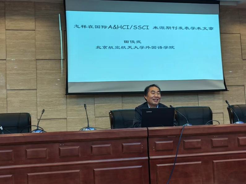 晚上在国际会议中心进行的“怎样在国际A&HCI/SSCI来源期刊发表学术文章”学术讲座中,田教授首先从国内外院师生发表需求大但高水平期刊数量匮乏的现状出发,介绍了SCI、SSCI、A&HCI三大国际期刊门类,分析了三类期刊的联系与区别、发文的难易度以及论文发表的倾向性等。然后,田教授结合自己丰富的英文论文发表和实战经验,详细介绍了自己在A&HCI发表论文的六大步骤和相关心得。