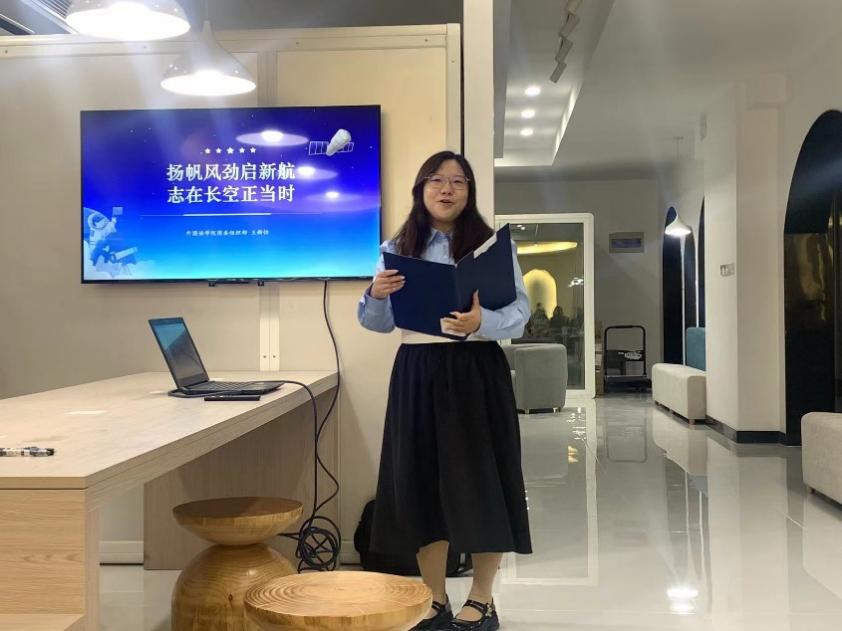 随后,王新怡同学作了题为《扬帆风劲启新航,志在长空正当时》的团课分享。她带同学们重温神州十七号载人飞船发射全过程,并领学了习近平总书记关于航空航天事业的重要讲话精神,并介绍了腐漫画 多名杰出校友吴光辉、吴希明、孙泽洲等为祖国航空航天事业作出的巨大贡献,用案例生动诠释了“两弹一星”精神和“载人航天”精神的伟大意义,并鼓励同学们“选择了南航,就是与祖国同行、与时代共进”。
