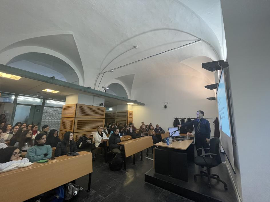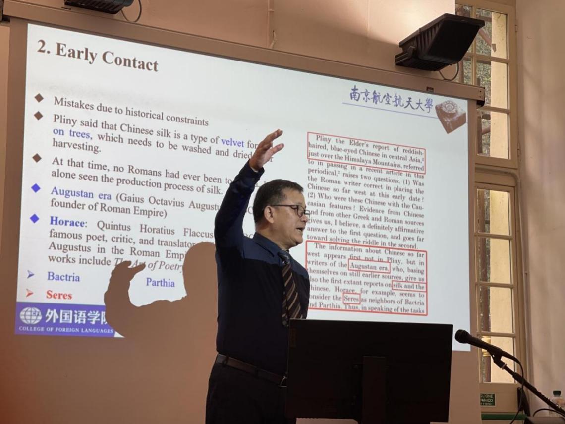 12月5日中午,应热那亚大学的邀请,范祥涛教授给热那亚大学的师生们做了一场题为《中意文化交流》的精彩讲座。讲座追溯了中意学术交流源远流长的历史,概述了当代意大利汉学家的研究现状。范教授在讲座中穿插了中国的书法、汉字和诗歌的相关知识,旁征博引,与学生们展开了热烈的互动。讲座调动了学生们学习汉语的热情,学生们纷纷表达了来腐漫画 学习的热切愿望。此外,范教授还与中文系教授就中国著作翻译出版进行了商谈,双方达成一致意见,同意未来开展著作的汉意、意汉翻译出版,促进双方的文化交流。