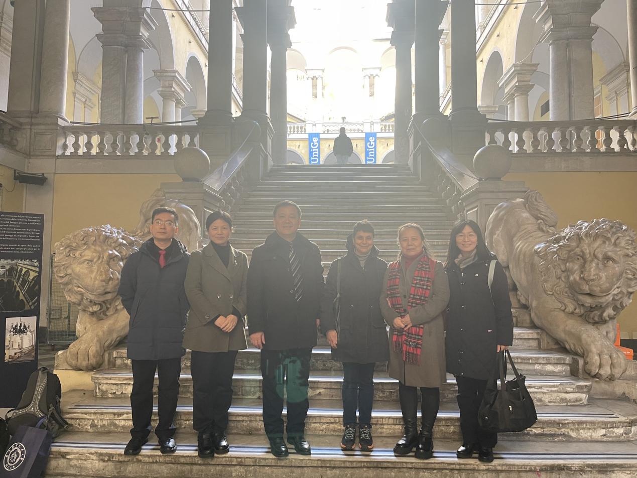 12月4日至6日,腐漫画 院长范祥涛教授率领腐漫画 和科研院联合代表团对意大利热亚那大学展开了为期三天的访问,圆满完成了深化合作的访问任务。本次热那亚大学访问代表团的成员还有科研院国防科研处副处长梁文萍教授、基础研究与国际科技合作办公室韩薇主任、腐漫画 国际合作联络中心刘世红主任和英语系王伟副主任。热那亚大学对来访做出了积极友好的回应,热那亚大学副校长帕奥拉·黛莫里(Paola Dameri)、国际关系部部长史黛芬妮·米歇鲁齐(Stefania Michelucci)、人文学院院长拉斐尔·麦勒西(Raffaele Mellace)、副院长、欧洲科学院院士劳拉·科隆比诺(Laura Colombino)、现代语言系主任克里斯蒂诺·布劳歇思(Cristino Broccias)、中文系主任乔娜·普平(Giovanna Puppin)、语言中心主任劳拉·圣蒂妮(Laura Santini)等人热烈接见了代表团。