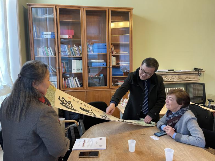 范祥涛院长与人文学院院长拉斐尔·麦勒西、副院长、欧洲科学院院士劳拉·科隆比诺洽谈合作