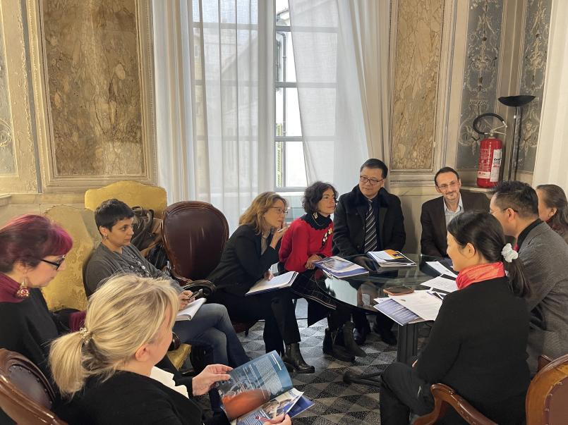 代表团与欧洲科学院院士、人文学院副院长劳拉·科隆比诺及教授们合影留念