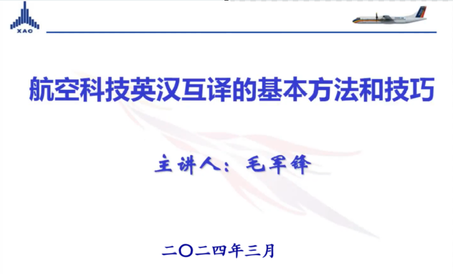 2024年3月18日晚,南航腐漫画 MTI教育中心邀请了知名企业导师毛军锋译审给2023级研究生带来行业翻译实训的第一堂课。毛军锋曾任中国航空工业集团有限责任公司翻译系列高级专业技术职务任职资格评审委员会委员,现任中国翻译协会专家会员、中国航空学会会员。本次课程,毛老师给大家带来了航空科技英汉互译的理论与实践系列课程,侧重分析和探讨了航空科技汉译英的翻译策略。